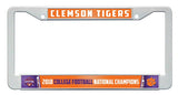 CLEMSON TIGERS NATIONAL CHAMPIONS 2018 WHITE PLASTIC LICENSE PLATE FRAME UNIVERSITY