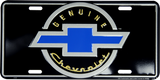 CHEVROLET GENUINE BOWTIE LICENSE PLATE METAL BLACK BLUE SILVER SIGN EMBOSSED