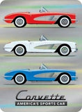 - How do you take America's sports car and add even more flash? By featuring a trio of them in patriotic colors on a can't-miss-it background. We've enhanced the natural shine of the unpainted metal with a sporty prismatic finish.