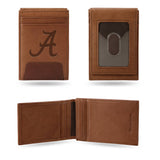 ALABAMA CRIMSON TIDE LASER ENGRAVED BROWN FRONT POCKET WALLET UNIVERSITY