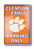 CLEMSON FANS PARKING ONLY METAL SIGN MAN CAVE CLEMSON TIGERS 12"x 18"