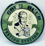 COLD BEER TESTING STATION TIN METAL ROUND SIGN 12" VOLUNTEERS NEEDED MANCAVE