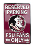 FLORIDA STATE RESERVED PARKING FSU FANS ONLY METAL SIGN 8"x 12"