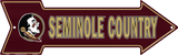 FLORIDA STATE SEMINOLE COUNTRY EMBOSSED METAL ARROW SIGN