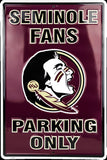 FLORIDA STATE SEMINOLE FANS PARKING ONLY LARGE 12" x 18" METAL SIGN