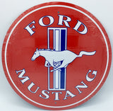 FORD MUSTANG PONY ROUND METAL TIN 12" SIGN RED MANCAVE NOSTALGIC RETRO GARAGE