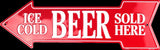 ICE COLD BEER SOLD HERE EMBOSSED METAL ARROW SIGN