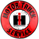 INTERNATIONAL HARVESTER MOTOR TRUCK SERVICE TIN METAL ROUND SIGN 12" EMBOSSED
