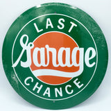 LAST CHANCE GARAGE TIN METAL ROUND SIGN 12" MAN CAVE DECOR SHOP AUTO