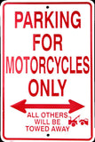 MOTORCYCLE PARKING ONLY ALL OTHERS WILL BE TOWED AWAY SIGN METAL