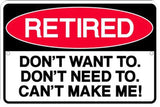 RETIRED SIGN 12" X 8" METAL PARKING DON'T WANT TO DON'T NEED TO CAN'T MAKE ME!