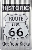 ROUTE 66 HISTORIC GET YOUR KICKS US CORRUGATED TIN SIGN