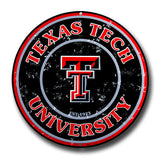 TEXAS TECH UNIVERSITY ROUND METAL SIGN RED RAIDERS