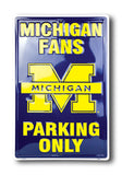 UNIVERSITY OF MICHIGAN FANS PARKING ONLY LARGE METAL SIGN