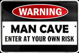 WARNING MAN CAVE ENTER AT YOUR OWN RISK METAL SIGN