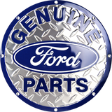 FORD GENUINE PARTS 24" X LARGE ROUND SIGN DIAMOND METAL TIN EMBOSSED LOGO GARAGE
