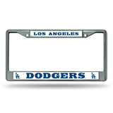 LOS ANGELES DODGERS CAR TRUCK TAG METAL LICENSE PLATE FRAME CHROME WHITE MLB LA BASEBALL