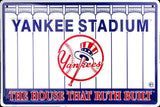 NEW YORK YANKEES STADIUM EMBOSSED METAL SIGN THE HOUSE THAT RUTH BUILT