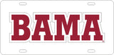 ALABAMA CRIMSON TIDE ACRYLIC CAR TAG WHITE W/ RED BAMA W/ SILVER TRIM REFLECTIVE DECAL LICENSE PLATE UNIVERSITY SIGN