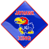 KANSAS JAYHAWKS 12 X 12" EMBOSSED METAL JAYHAWK XING CROSSING SIGN