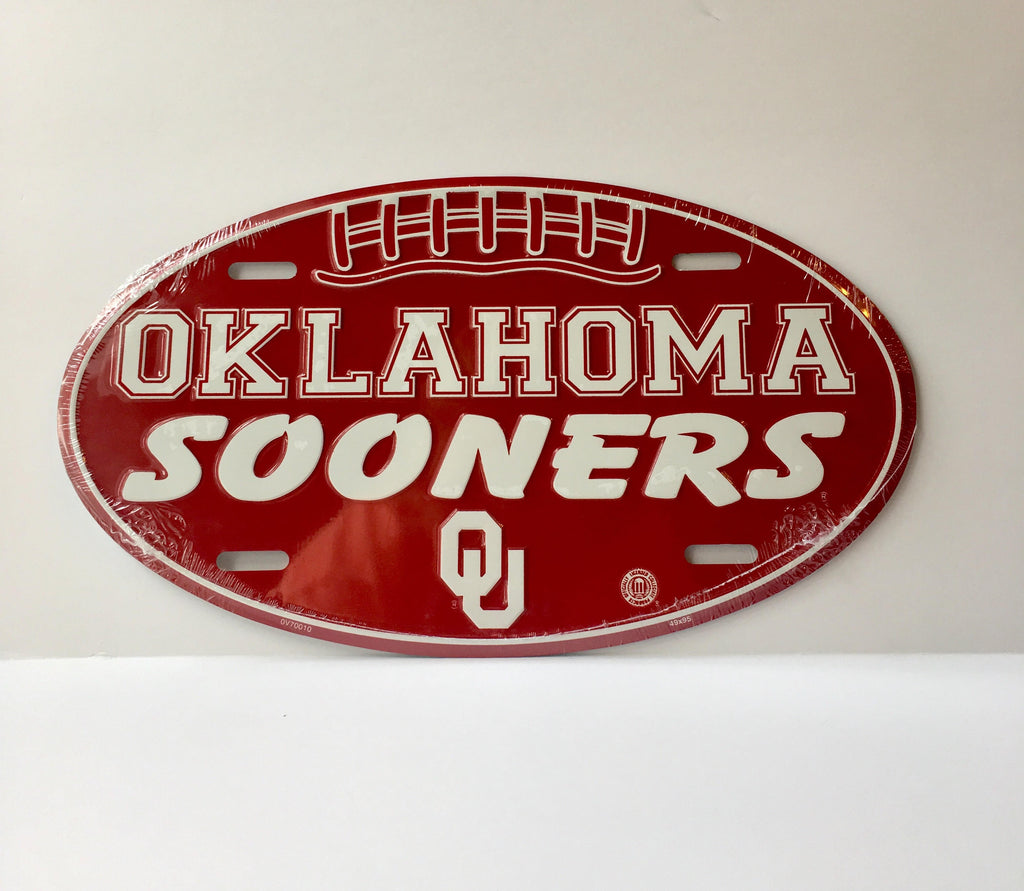 OKLAHOMA SOONERS CAR TRUCK TAG OVAL FOOTBALL LICENSE PLATE METAL