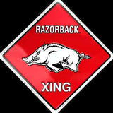 UNIVERSITY OF ARKANSAS 12 x 12" METAL RAZORBACK XING CROSSING SIGN RAZORBACKS MAN CAVE GAME ROOM