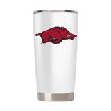 ARKANSAS RAZORBACKS 20 OZ WHITE VACUUM INSULATED TUMBLER TRAVEL MUG UNIVERSITY