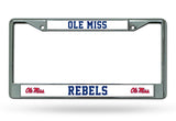 OLE MISS REBELS CAR TRUCK TAG METAL LICENSE PLATE FRAME CHROME WHITE UNIVERSITY