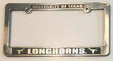 TEXAS LONGHORNS CAR TRUCK TAG FRAME SILVER BLACK LICENSE PLATE UNIVERSITY MAN CAVE SPORTS GAME ROOM